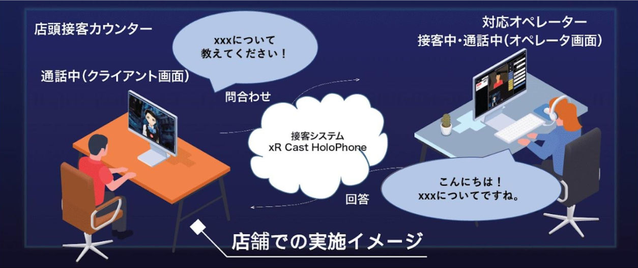 労働者人口の減少などが深刻な社会問題化する中、近い未来には店舗や受付など接客が必要な領域で深刻な人員不足が発生する事が予見されています。そのような、接客が必要な様々な場面を単に効率化するのではなく、Virtualの店員さんを実現し、より満足度の高い顧客体験を提供するためのソリューションを弊社ではxRCastとして開発を進めております。省力化を進めながらも、A.I.や3Dホログラムなどの先進的なデジタル技術を活用した未来のお店が、さらに楽しい場所であるよう、けして人間らしさを損なわない世界を目指しています。